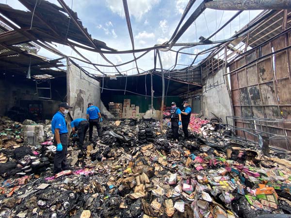 ตรวจสถานที่เกิดเหตุ เหตุเพลิงไหม้โกดังเก็บสินค้า บริเวณตลาดเมืองใหม่ อ.เมือง จว.ยะลา 160464