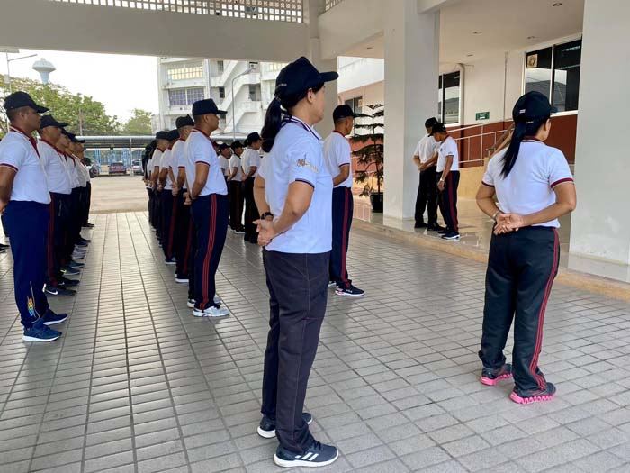 ข้าราชการตำรวจในสังกัด ร่วมฝึกแถวประจำสัปดาห์ ณ บริเวณหน้าอาคาร ศพฐ.10