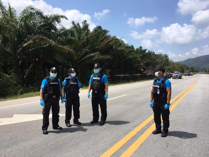 วันนี้(3 ก.พ.63)เวลา 11.45 น.พ.ต.อ.ดำรงค์ ขำเปลี่ยน นวท.(สบ5)ศพฐ.10,พ.ต.อ.สุรนาท วงศ์พรหมชัย นวท.(สบ4)กอส.ศพฐ.10/หน.ศบค.ศนต.จชต.,ว่าที่ พ.ต.อ.มานิตย์ ปานทอง นวท.(สบ4)พฐ.จว.นราธิวาส พร้อมด้วย ชุด ชป.พฐ.จว.นราธิวาส ร่วมตรวจเหตุคนร้ายลอบวางระเบิดบริเวณแยกไฟแดงยาโงะ ม.3 ต.ตะปอเยาะ อ.ยี่งอ จว.นราธิวาส เหตุเกิดเมื่อเวลา 07.25 น.ที่ผ่านมา